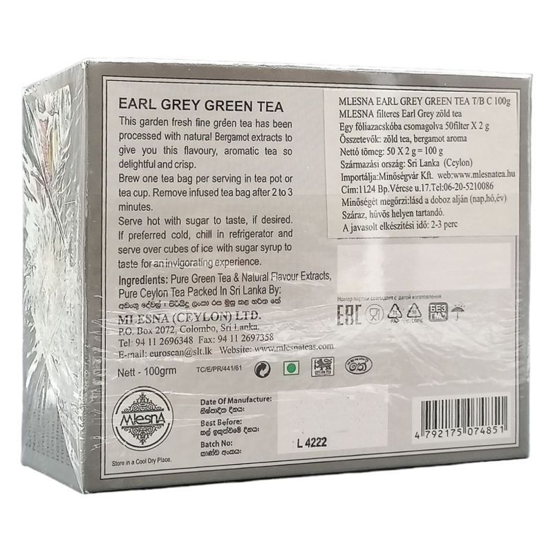 A Mlesna Earl Grey zöld tea egy különleges ízélményt kínál a tea szerelmeseinek. Ez a filteres zöld tea a legfinomabb zöld tea levelekből készült, melyeket a természetes bergamot aroma gazdagít. A tea aromazáró fóliazacskóba van csomagolva, így megőrzi frissességét és ízét, lehetővé téve, hogy minden egyes csésze tea a legjobb minőséget nyújtsa. A zöld tea jótékony hatásai mellett a bergamot citrusos, frissítő íze egyedi élményt nyújt, amely tökéletes választás lehet a nap bármely szakában. A tea elkészítése rendkívül egyszerű, mindössze annyira van szükség, hogy forró vízbe áztassuk a filtert, és néhány perc elteltével élvezhetjük a gazdag ízeket. A Mlesna Earl Grey zöld tea nemcsak ízletes, hanem egészséges alternatívát is kínál a mindennapi italok között, hiszen a zöld tea tele van antioxidánsokkal és más jótékony hatóanyagokkal.