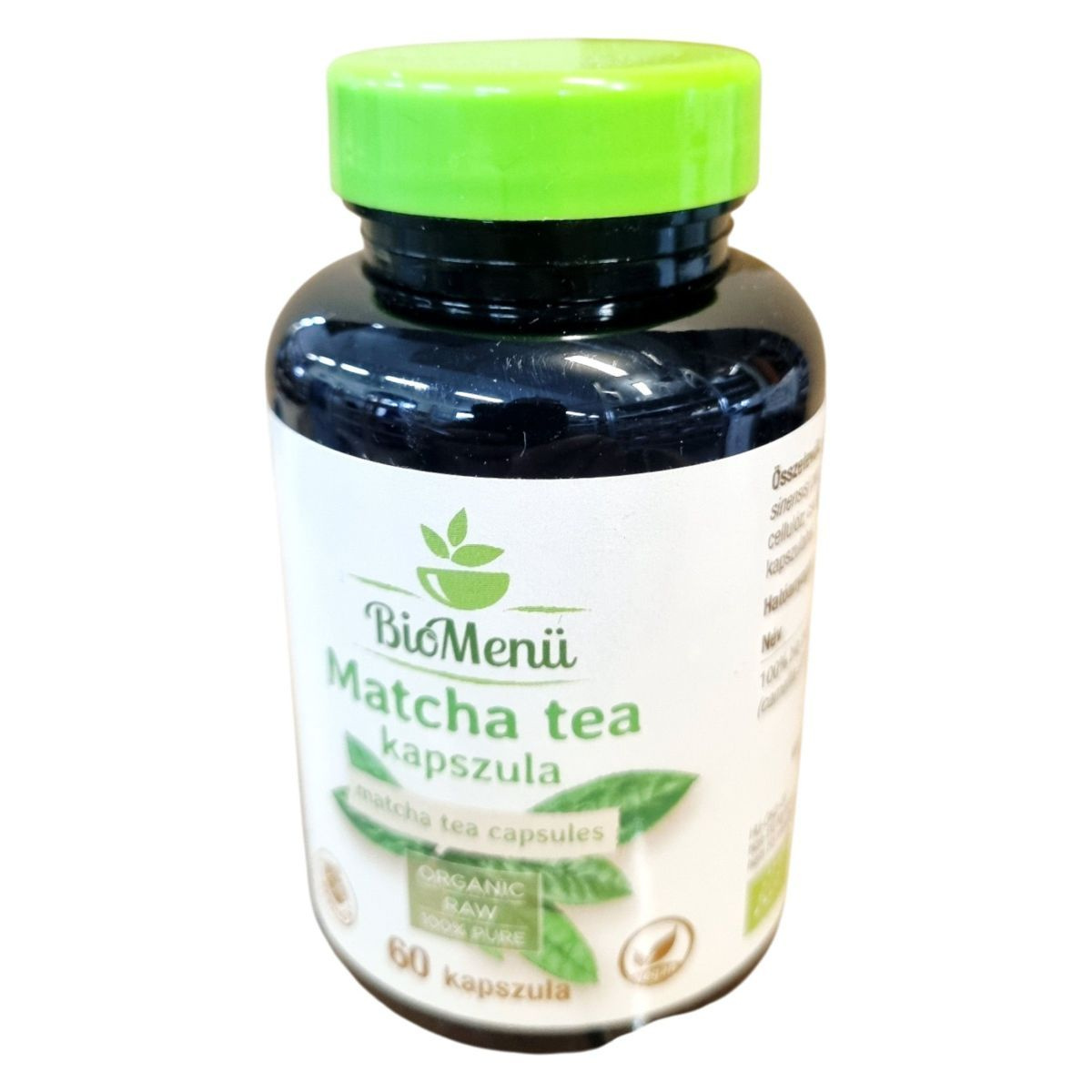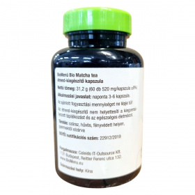 A BioMenü Bio Matcha tea kapszula egy organikus és nyers étrend-kiegészítő, amely 100% bio matcha zöld tea port tartalmaz. A termék Kínából származik, és a HU-ÖKO-02 tanúsítvánnyal rendelkezik, amely garantálja a bio minőséget. A kapszulák térfogatnövelő és csomósodást gátló anyagokat is tartalmaznak, mint a mikrokristályos cellulóz és a szilícium-dioxid. A termék célja, hogy támogassa az egészséges életmódot, de nem helyettesíti a kiegyensúlyozott táplálkozást. A forgalmazó a Caleido IT-Outsource Kft., amely Budapesten található.