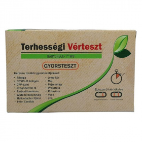 Önellenőrzésre szolgáló teszt terhesség kimutatására, egy csepp vérből.