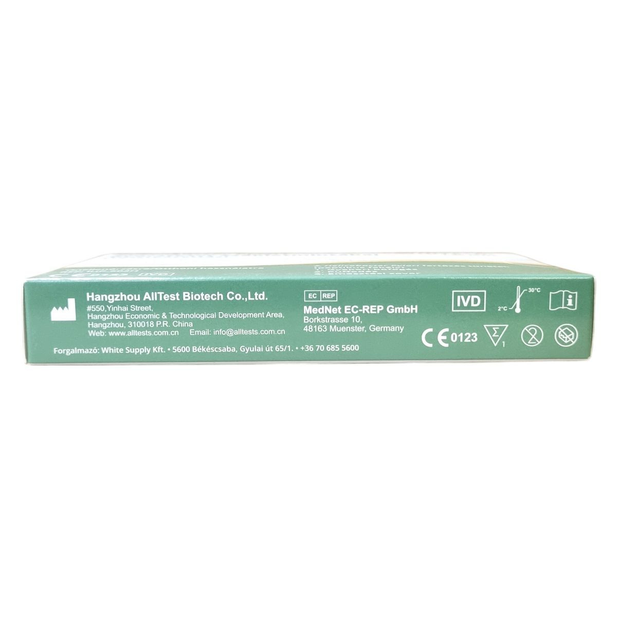 A Helicobacter Pylori Gyorsteszt székletmintából segít a Helicobacter Pylori fertőzés detektálásában, mely peptikus fekélyhez kapcsolódóan gyakori böfögést, puffadást és emésztési zavarokat okozhat. A termék egy darab tesztkazettát tartalmaz, valamint egy mintagyűjtő csövet extrakciós pufferoldattal, székletgyűjtő papírt és használati útmutatót. Az egyszerű eljárás során a mintagyűjtő cső kupakjának eltávolítása és felrázása után 2 perc múlva a csúcs letörése szükséges, majd 2 cseppet kell cseppenteni a tesztkazettára. Az eredményt 10 perc múlva lehet leolvasni. A termék otthoni, önellenőrzésre alkalmas, használata gyors és egyszerű. A gyártó a Hangzhou AllTest Biotech Co., Ltd. Kínában, az európai képviselet a MedNet EC-REP GmbH Németországban. A termék forgalmazója White Supply Kft., Békéscsaba, Magyarország. Tárolása hűtőszekrényen kívüli, 2-30 °C között javasolt.