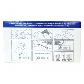 tesztkazetta, cseppentő, pufferoldat, alkoholos gézpárna, ujjbegyszúró lándzsa