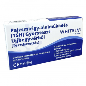 Gyors és egyszerű otthoni teszt a pajzsmirigy-alulműködés (TSH) szintjének meghatározására ujjbegyvérből, megbízható eredménnyel és könnyű használattal.