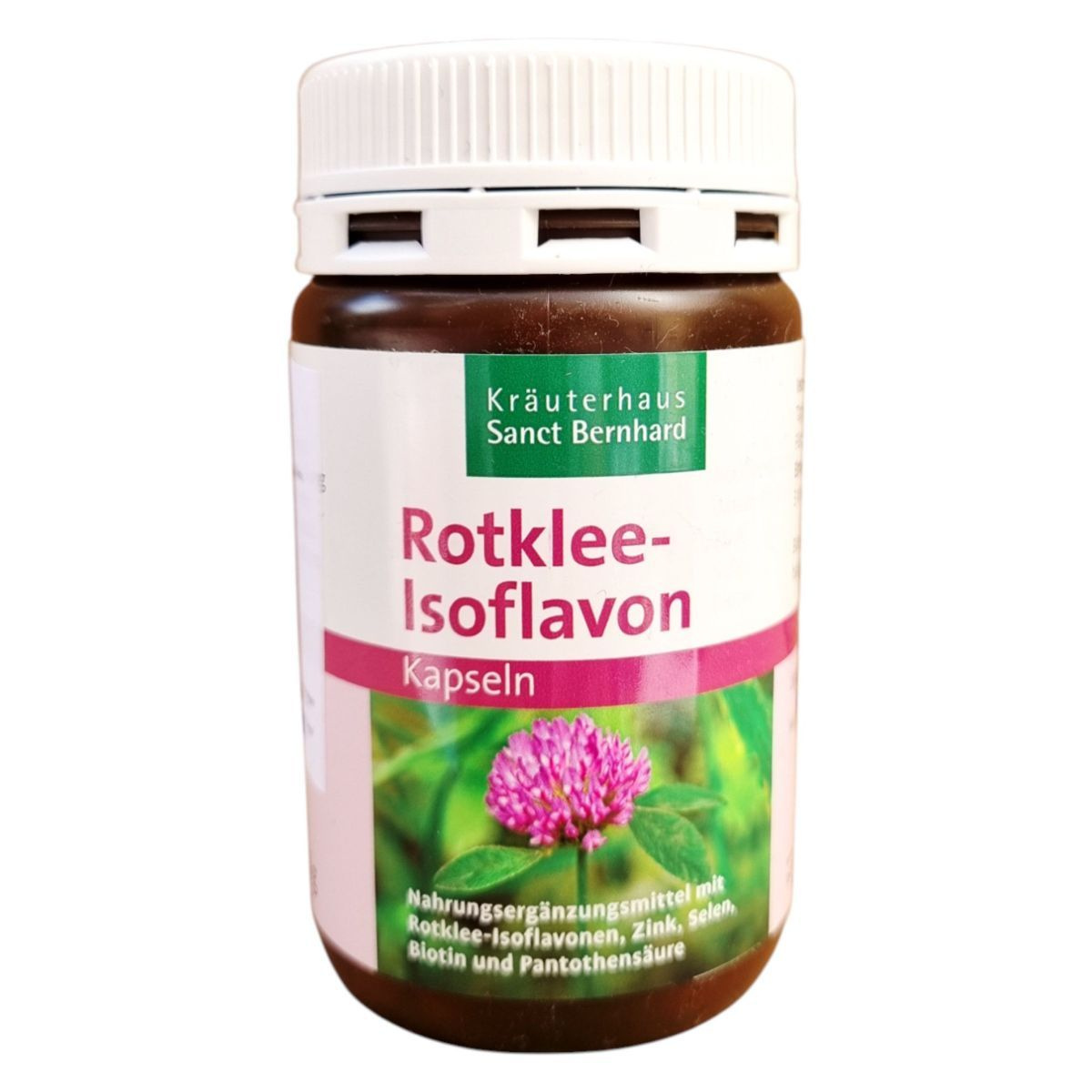 A Kräuterhaus Sanct Bernhard Rotklee-Isoflavon kapszula vörös lóherét tartalmaz, amely izoflavonokban gazdag. A termék cinket, szelént, biotint és pantoténsavat is tartalmaz, amelyek hozzájárulhatnak a szervezet különböző folyamataihoz. A biotin például támogathatja a normál bőr és haj fenntartását. A kapszulát naponta egyszer, bő folyadékkal, rágás nélkül ajánlott fogyasztani, és három hónapos szedés után három hónap szünet javasolt. A termék tárolása száraz, hűvös helyen, 25°C alatt ajánlott.