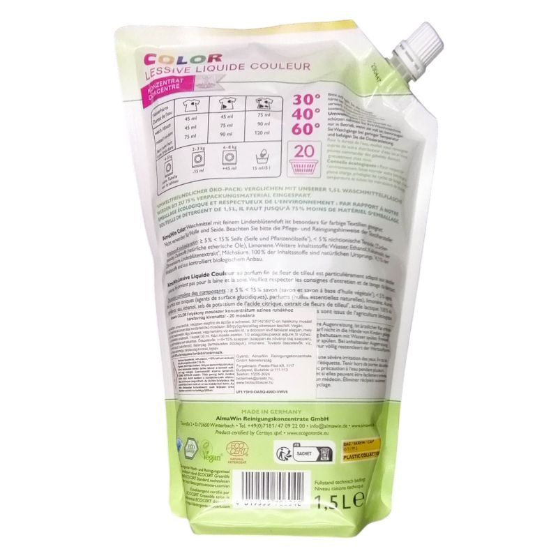 Az Almawin Hársfavirág folyékony mosószer Color mélyen tisztítja a színes ruhákat, emellett tartós ragyogást biztosít számukra.