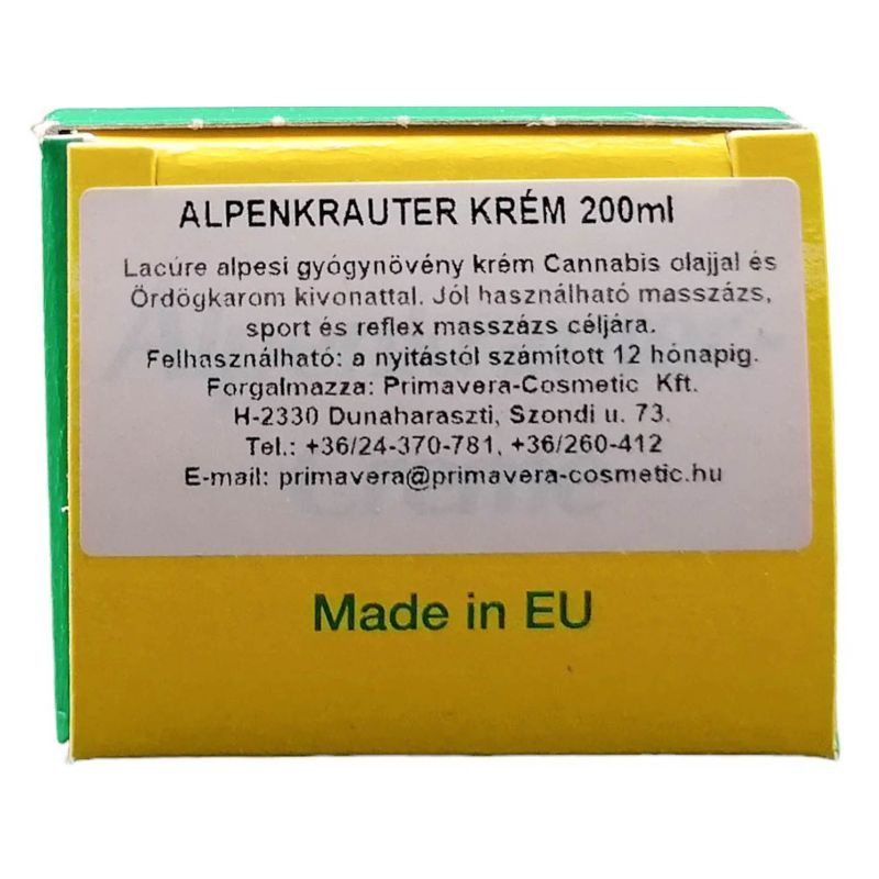 Összetétel: Aqua, Isopropyl Palmitate, Glycerin, Cocos Nucifera Oil, Cetearyl Alcohol, Glyceryl Stearate, Helianthus Annuus Seed Oil, Cannabis Sativa Seed Oil, Alcohol, Ceteareth-12, Cetearech-33, Phenoxyethanol, Camphor, Parfum, Propylene Glycol, Isopropyl Alcohol, Menthol, Triethanolamine, Carbomer, Mentha Arvensis Herb Oil, Harpagophytum Procumbens Root Extract, Salix Alba Bark Extract, Ethylhexylglycerin, BHT, Citrus Aurantium Bergamia Peel Oil, Abies Sibirica Oil, Citrus Lemon Peel Oil, Rosmarinus Officinalis Leaf Oil, Salvia Lavendulifolia Herb Oil, Limonene, Linalool, Eugenol, Citral. Allergének: Limonene, Linalool, Eugenol, Citral.