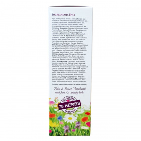 Aqua (Water), Alcool 38°Vol., Salvia Officinalis leaf, Symphitum Officinale root, Symphytum Officinale leaf, Artemisia Vulgaris herb, Agrimonia Eupatoria leaf, Verbena Officinalis leaf, Arnica Montana flower, Artemisia Absinthium herb, Plantago Lanceolata leaf, Cnicus Benedictus, Fumaria Officinalis leaf, Bellis Perennis flower, Stachys Officinalis, Cistus Leaf conc, Foenicula Vulgare seed, Thymus Vulgaris leaf, Calendula Officinalis flower, Althaea Officinalis leaf, Urtica Dioica leaf, Equisetum Arvense leaf, Euphrasia Officinalis, Nigella Sativa seed, Chamomilla Recutita flower, Azadirachta Indica Leaf, Sambucus Nigra flower, Alchemilla Vulgaris leaf, Echinacea Angustifolia root, Centarium Erytraea, Salix Bark, Echinacea Angustifolia leaf, Rosmarinus Officinale leaf, Hypericum Perforatum leaf, Veronica Officinalis leaf, Angelica Archangelica root, Hyssopus Officinalis herb, Lavandula Angustifolia herb, Achillea Millefolium flowers/leaf, Menta Piperita herb, Gallium Verum, Filipendula Formosa, Taraxacum Officinale root, Stellaria Media, Althaea radix, Gerani rob. herba, Centuarea Cyanus flower, Viola Tricolor, Epilobium Parviflorum leaf/stem, Galium Odoratum, Viscum Album, Oak Cortex, Carthamus Tictorius flower, Vaccinium Myrtillus fruit, Calluna Vulgaris flower/leaf, Malva Sylvestris flower, Potentilla Anserina, Brassica Alba sprout, Verbascum Thapsus leaf, Tussilago Farfara leaf, Lamium Album leaf, Rosa Canina Fruit, Juglans Regia leaf, Melissa Officinalis leaf, Citrus Aurantium Amara flower, Melilotus Officinalis herb, Chelidonium Majus, Hibiscus Sabdariffa flower, Arctostaphylos Uva-ursi leaf, Eupatorium Cannabinum, Nasturtium Officinale leaf/root, Solidaginis gig. herba conc, Arctium lappa radix, Uniperus Communis Fruit, Rosa Flower, Petasites Hybridus root, Acorus Calamus root.