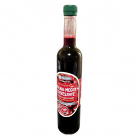 Málnát, meggyet és cseresznyét tartalmazó gyümölcsesszencia szőlőalappal, 100% gyümölcstartalommal, prémium minőségben.