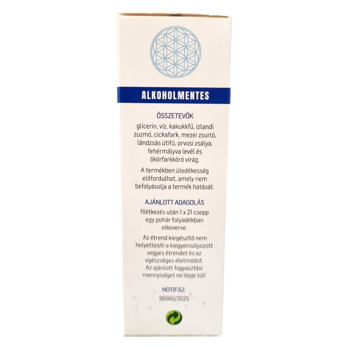 Az étrend-kiegészítő nem helyettesíti a kiegyensúlyozott vegyes étrendet és az egészséges életmódot. Az ajánlott fogyasztási mennyiséget ne lépje túl!