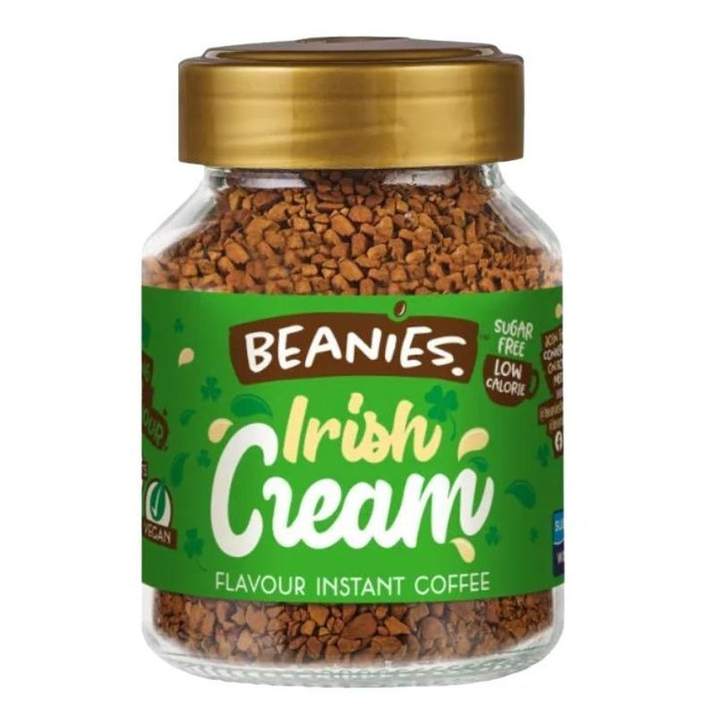 Beanies Irish Cream Ír krémlikõrös ízesített instant kávé Angliából: a prémium minőségű kávét fagyasztva szárítják és különlegesen finom ízeket adnak hozzá, hogy a kávézás minden alkalommal igazi ünnep legyen.