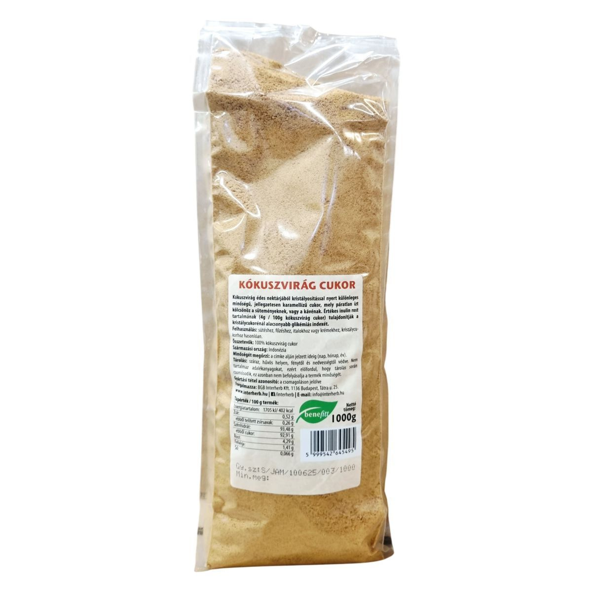 A kókuszvirág cukor kókuszvirág édes nektárjából kristályosítással készül, amely egyedülálló ízt ad süteményeknek és kávénak. Magas inulin rosttartalmánál fogva glikémiás indexe alacsonyabb a hagyományos kristálycukorénál, így egészségesebb választás lehet. Származási helye Indonézia. A termék nem tartalmaz adalékanyagokat, és gyártási tétel azonosítóval rendelkezik, mely a csomagoláson található.