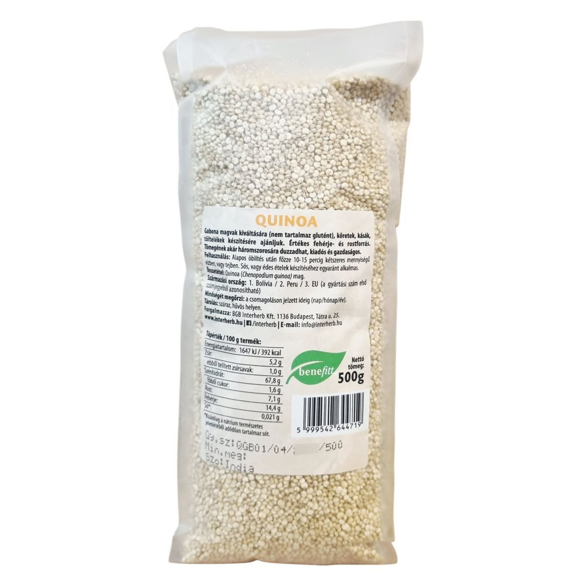 A quinoa gluténmentes, kiváló rost- és fehérjeforrás, mely tömegének akár háromszorosára duzzad főzés közben, így kiadós és gazdaságos alapanyagként szolgál gabonafélék helyettesítésére, köretek, kásák vagy töltelékek készítéséhez. Származási helyei Bolívia, Peru és az EU, amely a gyártási szám első számjegyéből felismerhető. Elsődleges felhasználása után alapos öblítést és főzést igényel, ezáltal rugalmasan alkalmazható különböző konyhai receptekben.