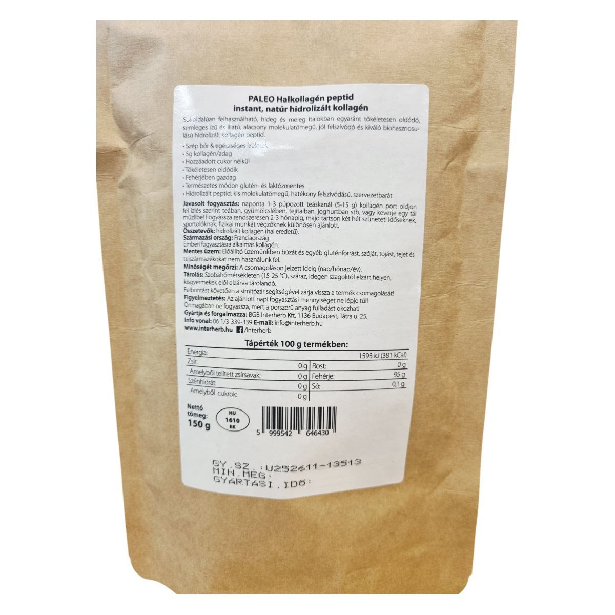 A PALEO Halkollagén peptid egy alacsony molekulatömegű, hidrolizált kollagén peptid, amely kiváló biohasznosulású és szervezetbarát. Semleges ízével és jó oldódásával sokoldalúan felhasználható különböző hideg és meleg italokban vagy ételekben. A termék hozzáadott cukor nélkül készül, és természetes módon glutén- valamint laktózmentes. Előállítására mentes üzem szolgál, amely nem használ búzát, egyéb gluténforrást, szóját, tojást, tejet vagy tejszármazékokat. A kollagén franciaországi származású, emberi fogyasztásra alkalmas, és különösen ajánlott időseknek, sportolóknak, továbbá fizikai munkát végzőknek. A termék fogyasztása során ajánlott a rendszeresség és a szünet tartása a kúra időtartamának megfelelően.