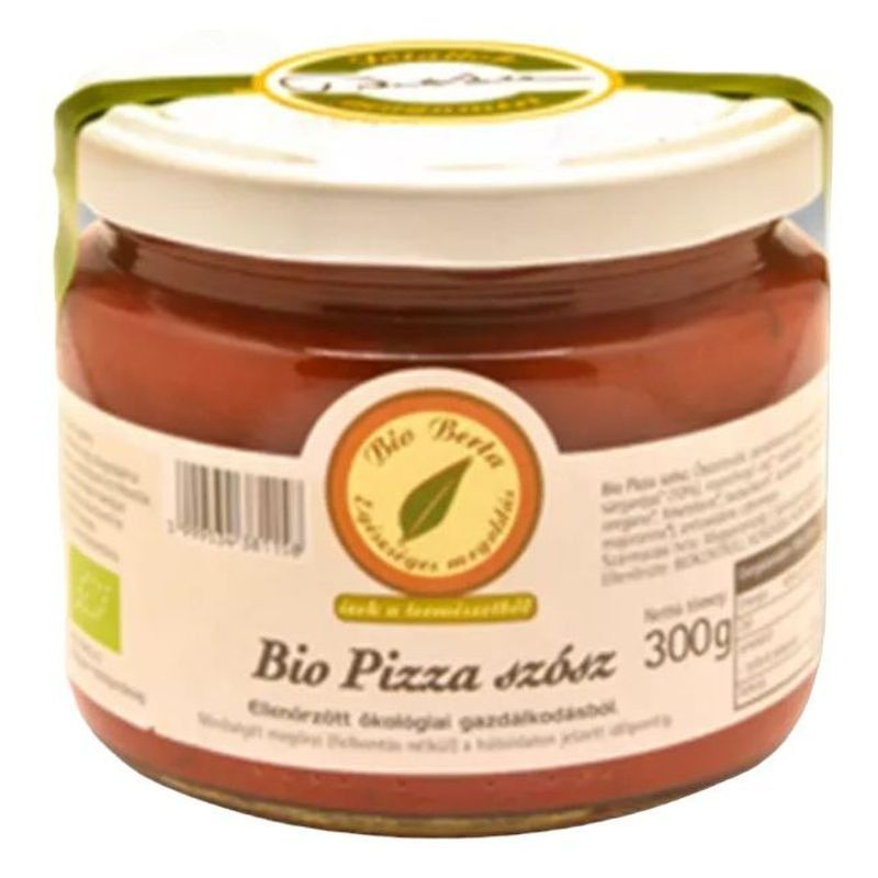 Hazai, bio terményekből készült, klasszikus olaszos fűszerezésű paradicsomos alap pizzára, üveg csomagolásban. Pálmaolajmentes és vegán.