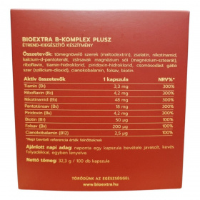 A BIOEXTRA B-KOMPLEX PLUSZ B-vitaminokat tartalmaz, amelyek hozzájárulhatnak az ideg- és immunrendszer normál működéséhez, valamint a fáradtság csökkentéséhez.