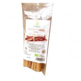 A BioMenü Ceyloni fahéj egész formában kapható, 25 g-os kiszerelésben. A termék 100% bio fahéjat tartalmaz, amely Sri Lankáról származik. Ideális választás azok számára, akik a természetes és vegán étrendet részesítik előnyben.