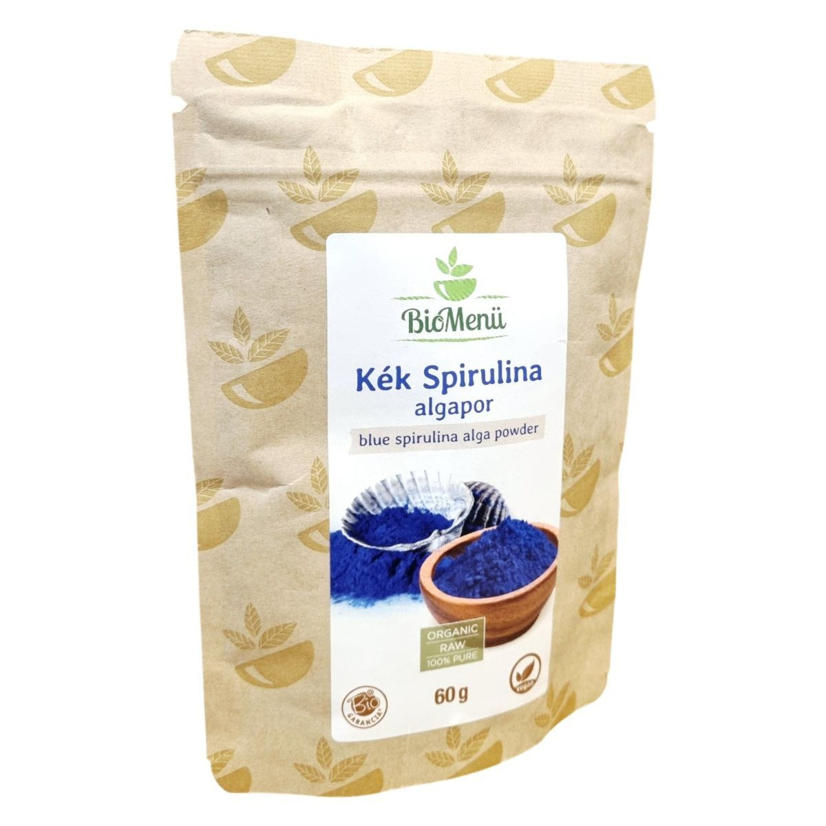 A BioMenü Kék Spirulina algapor egy 100% bio spirulina platensis kivonatot tartalmazó étrend-kiegészítő, amely Kínából származik. A termék bio, raw és vegán étrendi irányzatoknak megfelelően készült, és 60 grammos kiszerelésben kapható. Az algapor fogyasztása napi egy adagban, 2-3 részletben, étkezés előtt, bő folyadékkal ajánlott. Az első héten csak fél adag fogyasztása javasolt. A termék táplálkozási tulajdonságai változhatnak a környezeti feltételektől függően. Fontos, hogy az ajánlott napi fogyasztási mennyiséget ne lépje túl, és az étrend-kiegészítő nem helyettesíti a vegyes étrendet és az egészséges életmódot. A termék HU-ÖKO-02 tanúsítvánnyal rendelkezik, és a Caleido IT-Outsource Kft. forgalmazza.