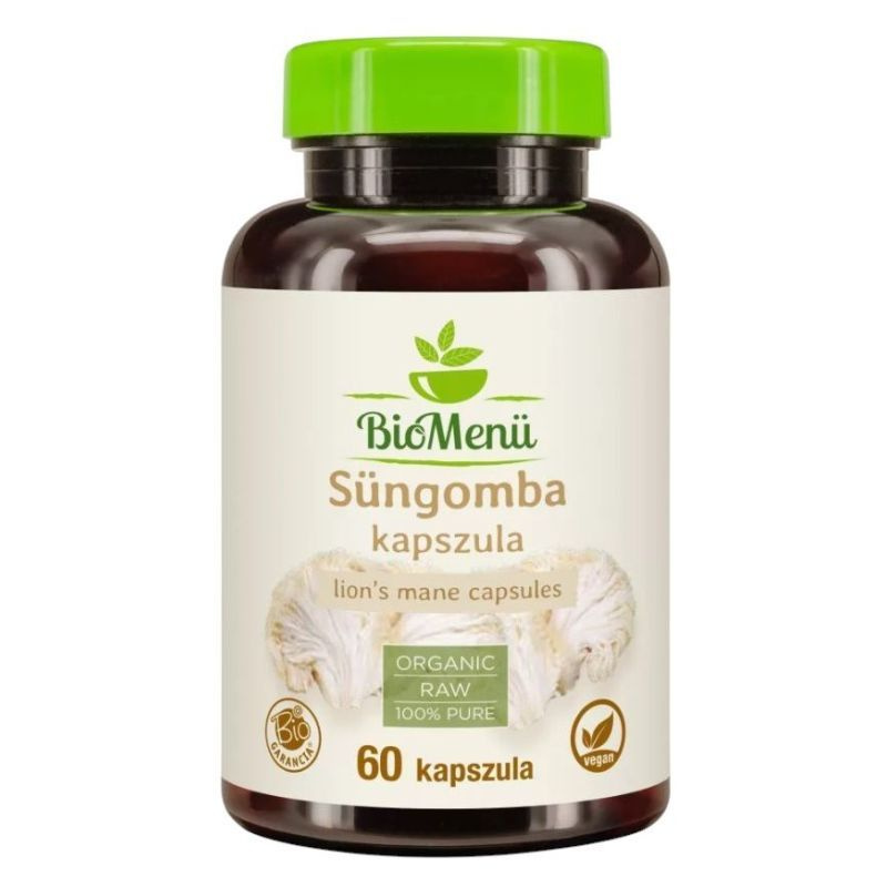 Összetevők: 100% bio süngomba (hericium erinaceus) por, kapszulahéj: hidroxipropil-metil-cellulóz.