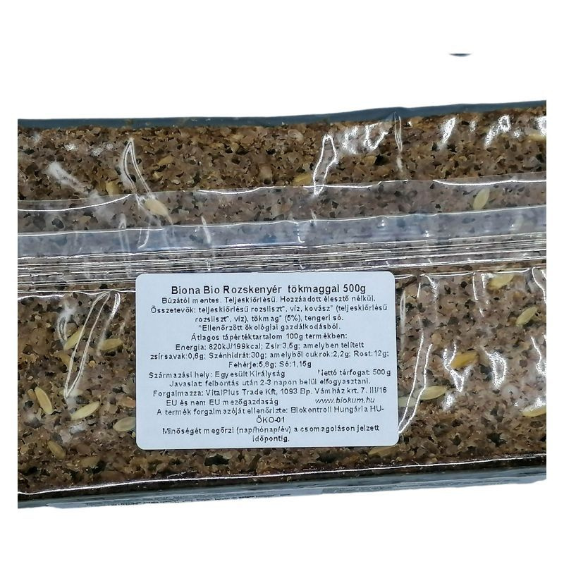 Összetevők: teljes kiőrlésű rozsliszt, víz, tökmag (5%), tengeri só, kovásszal készült.