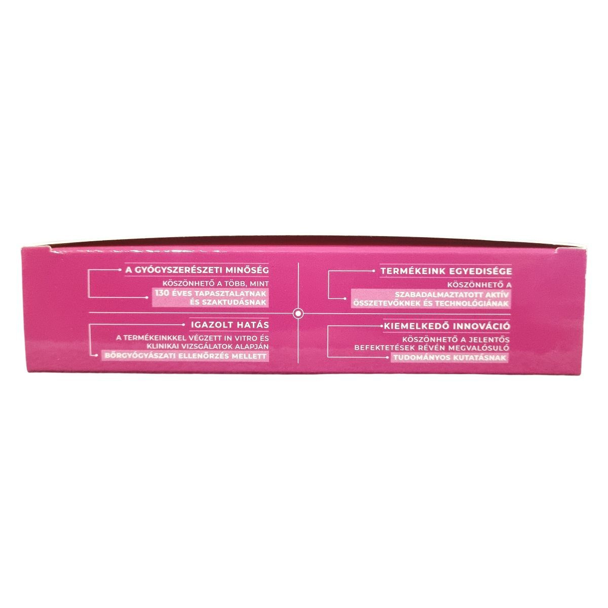 A Bioscalin® Tricovel TricoAGE 50+ étrend-kiegészítőt kifejezetten a 50 év feletti nők igényeihez fejlesztették ki, támogatva hajuk egészségét a menopauza előtti és utáni változások során. A termék összetétele tartalmaz iSACTIF komplexet, mely riboflavint és maslinsavban titralt olíva kivonatot foglal magában, valamint wakame algát, amely esszenciális tápanyagokat biztosít, továbbá borágóolajat, ami természetes esszenciális zsírsavforrás. A réz hozzájárulhat a sejtek oxidatív stresszel szembeni védelméhez és a haj normál pigmentációjához, míg a cink a haj, bőr és körmök normál állapotának megőrzéséhez. A FAST & SLOW RELEASE technológia a háromrétegű tablettának köszönhetően szabályozottan és fokozatosan bocsátja ki az aktív összetevőket, így növelve a hatékonyságot. A termék gluténmentes, és kizárólag minőségi, szabadalmaztatott aktív összetevőket tartalmaz, melyek tudományos kutatásokon alapulnak. Az alkalmazás során figyelembe kell venni az ajánlott napi adagot, és a termék nem helyettesítheti a változatos étrendet és az egészséges életmódot.