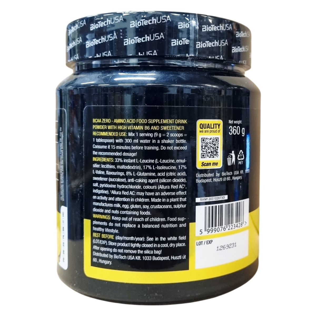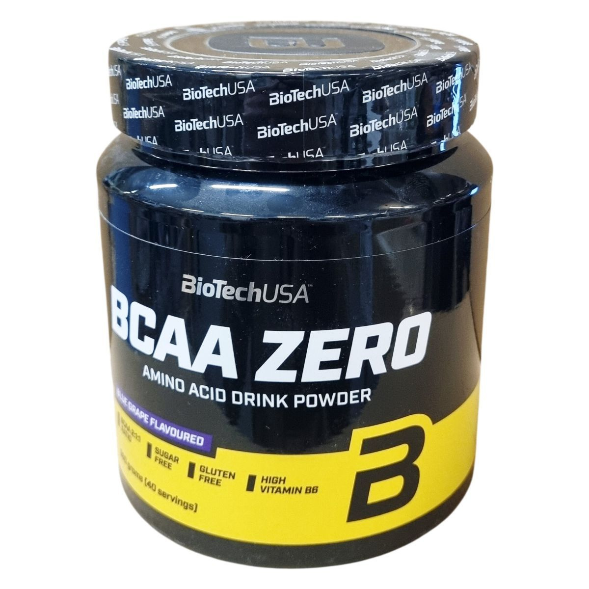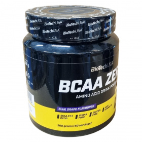A BioTechUSA BCAA ZERO egy aminosav alapú étrend-kiegészítő italpor, amely BCAA-kból és L-Glutaminból áll, emellett magas B6-vitamin tartalommal rendelkezik. Cukormentes, gluténmentes és kék szőlő ízű termék. A csomag 40 adagot tartalmaz, melyek mindegyike 9 gramm port jelent. A termék az Európai Unió területén készült, az alapanyagok többsége nem EU-s eredetű. Az édesítőszer szukralózt tartalmaz, és a színezékek között Allura Red AC szerepel, ami hatással lehet a gyermekek aktivitására és figyelmére. Az italport vízzel kell elkeverni, és edzés előtt fogyasztani javasolt. A termék olyan gyártóüzemben készül, ahol előfordulhatnak más allergének, így azok nagyon érzékeny fogyasztóknak nem ajánlottak. A termék rendszeres használata kiegészítheti a testmozgást és az egészséges életmódot, javíthatja a sporteredményeket és segítheti az izomregenerációt.