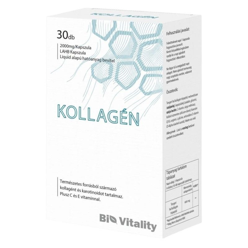 A kollagén elengedhetetlen a szervezet számára, mivel hozzájárul a bőr, a haj, a körmök és az ízületek egészségéhez. A kollagén kapszulák rendszeres használata segít megőrizni a fiatalos megjelenést és a vitalitást, hiszen segít a bőr hidratálásában, a haj erősítésében és a körmök egészségének megőrzésében. A kapszulák könnyen alkalmazhatóak, és gyorsan beépíthetők a napi rutinba.