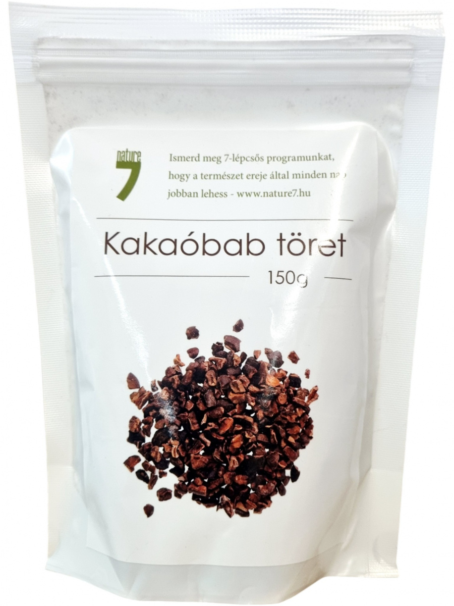 A Nature7 Kakaóbab töret egy természetes, adalékanyagoktól mentes élelmiszer, amely a kakaóbab eredeti, roppanós formáját kínálja. A termék kiváló alapanyag sütemények, müzlik, smoothie-k vagy desszertek ízesítéséhez. A magas kakaóvaj-tartalomnak és antioxidánsainak köszönhetően a kakaóbab töret fogyasztása segíthet a természetes energiaszint megőrzésében. A csomagolás újrazárható, így a termék hosszabb ideig friss marad. Származás: Peru