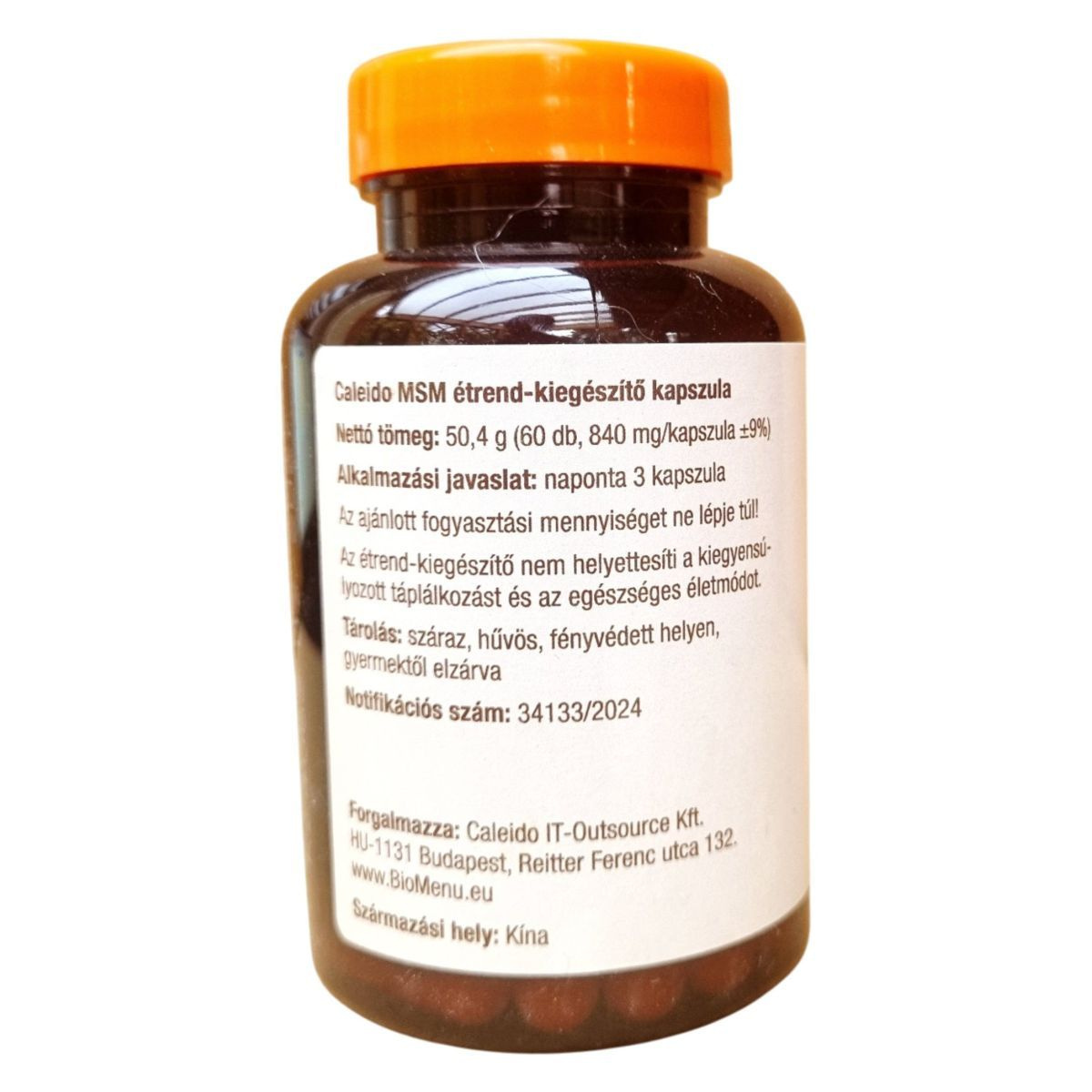 A Caleido MSM kapszula egy étrend-kiegészítő, amely metil-szulfonil-metánt tartalmaz, és hozzájárulhat az ízületek egészségének támogatásához. A termék napi adagja 2085 mg MSM-et biztosít, amely segíthet a szervezet kénszükségletének kielégítésében. Az MSM mellett a kapszula zsírsavak mono- és digliceridjeit, szilícium-dioxidot és növényi pullulánt tartalmaz. A termék használata során fontos, hogy az ajánlott napi mennyiséget ne lépjük túl, és ne feledjük, hogy az étrend-kiegészítők nem helyettesítik a kiegyensúlyozott táplálkozást és az egészséges életmódot. A terméket száraz, hűvös, fényvédett helyen, gyermekektől elzárva kell tárolni. A forgalmazó a Caleido IT-Outsource Kft., és a termék notifikációs száma 34133/2024.
