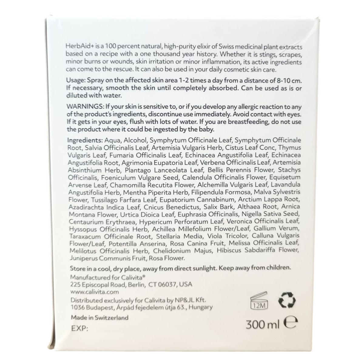A HerbAid+ egy magas tisztaságú, természetes gyógynövény-kivonatokat tartalmazó kozmetikai esszencia svájci eredetű alapanyagokkal, több száz éves receptúra alapján. Alkalmas a bőr ápolására, nyugtatására és regenerálására, használható csípések, horzsolások, kisebb égési sérülések, bőrirritáció és enyhe gyulladás esetén, valamint a mindennapi kozmetikai bőrápolás részeként.