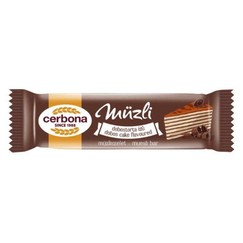 A Cerbona dobostorta ízű müzliszelete felidézi a híres magyar torta krémesen kakaós és omlós karamell ízeit.