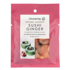 Népszerű sushi gyömbérünk mostantól bio minősítéssel is kapható. A Clearspring Sushi Ginger friss, pikáns ízével serkenti az étvágyat és élénkíti az ízlelőbimbókat.