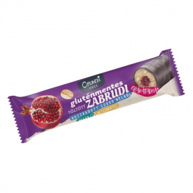Cornexi gluténmentes hozzáadott cukor nélküli zabrudi gránátalmás töltelékkel töltött zabrúd kakaós bevonattal édesítőszerrel.
