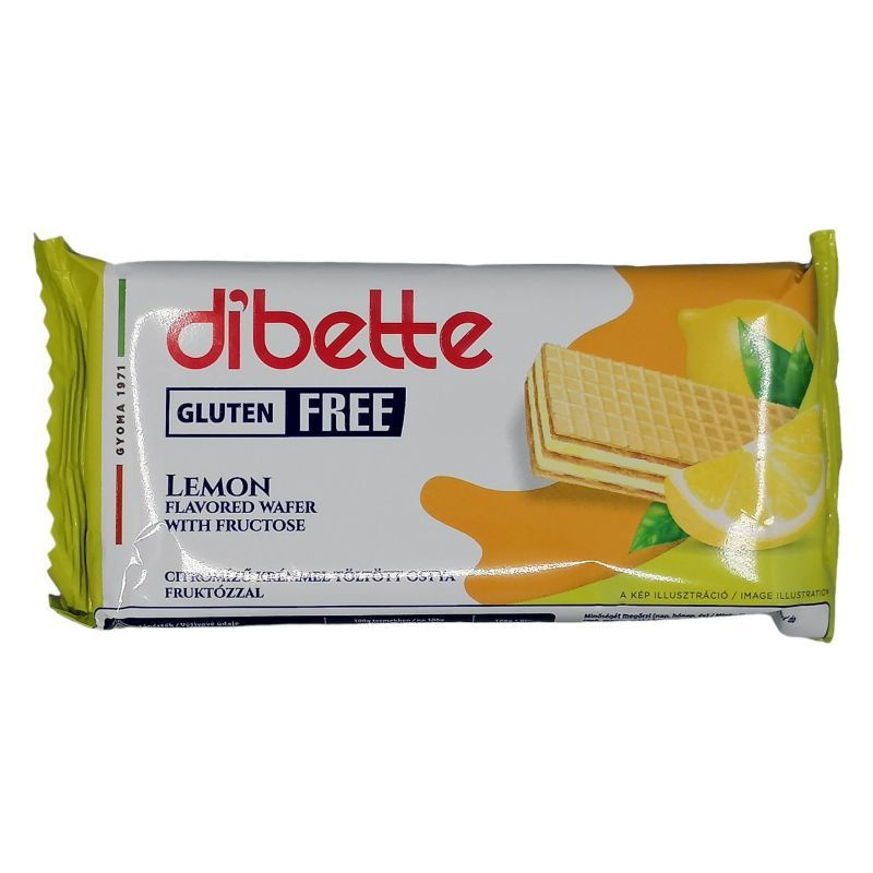 Gluténmentes citrom ízű krémmel töltött mártatlan ostya fruktózzal.