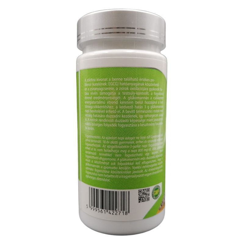 Zöldtea kivonatot és inulint tartalmazó étrend-kiegészítő magas polifenol tartalommal a fogyókúra támogatásához.