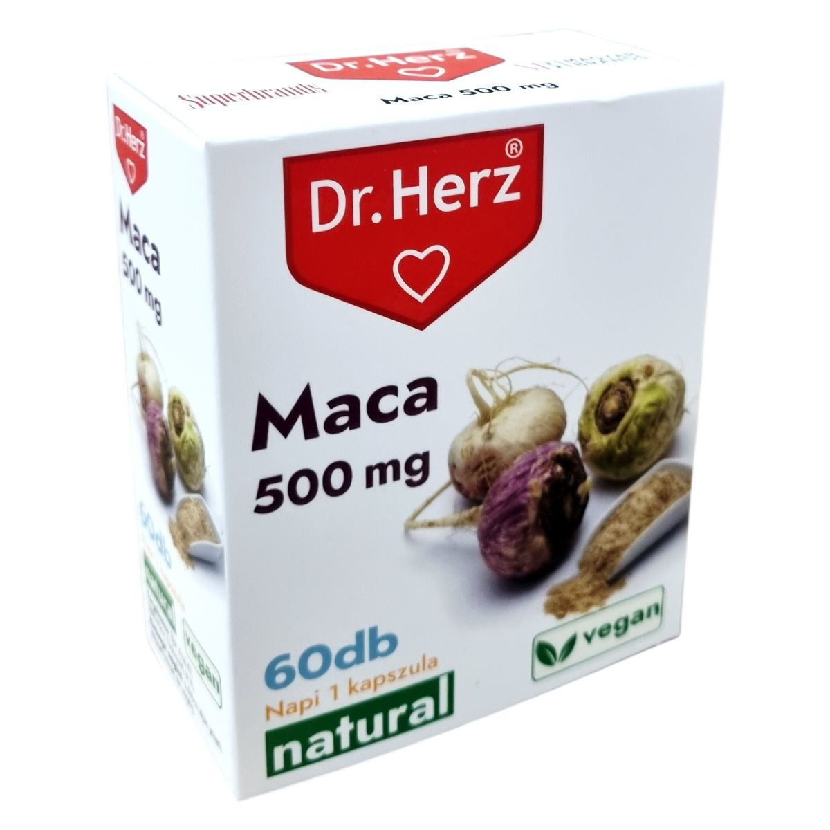 A Dr.Herz Maca kapszula 500 mg maca gyökér kivonatot tartalmaz, amely hozzájárulhat az optimális fizikai és mentális teljesítmény fenntartásához, valamint támogathatja az állóképességet és vitalitást. A termék elősegítheti az egészséges szexuális funkciókat és energiát, valamint a stressz kezelését. A maca gyökér kivonat (10:1 arányú koncentrációban) természetes módon készült, rizskeményítővel töltött kapszulahéjban található. A termék fogyasztása megfelelő lehet azok számára, akik természetes eredetű, vegán étrend-kiegészítőt keresnek az életminőség támogatásához.