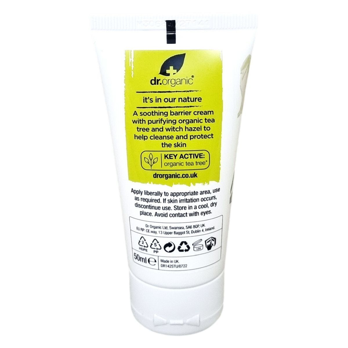 Ez a nyugtató gátkrém bio teafa- és varázsmogyoró-kivonatot tartalmaz, amely segít a bőr tisztításában és védelmében. A termék növényi eredetű összetevőkkel készült, csomagolása újrahasznosított és újrahasznosítható anyagokból áll. A krém vegán, állatkísérlet-mentes és a természet tiszteletével fejlesztették ki, támogatva a bolygó védelmét is.