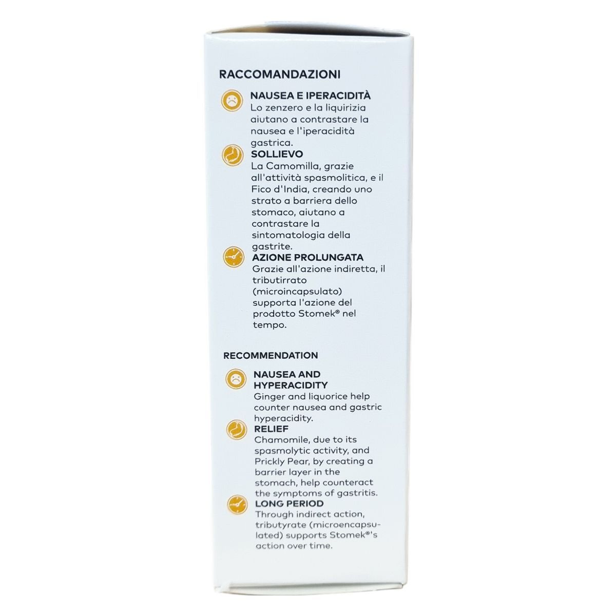 A Stomek tabletták gyomorműködés támogatására készültek kutyák számára. A gyömbér és az édesgyökér hozzájárulhat hányinger és savtúltengés csökkentéséhez. A kamilla segítheti a görcsök oldását, míg a fügekaktusz egy védőréteget hozhat létre a gyomorban, amely enyhítheti a gyomorgyulladás tüneteit. A mikrokapszulázott glicerin-tributirát hosszabb távú hatást segíthet támogatni. A termék 4 blisztert tartalmaz, mindegyik 8 tablettát 1500 mg-os kiszerelésben. Alkalmazása naponta egyszer ajánlott, testsúly szerint adagolva. A gyártó Nextmune Italy S.R.L., a forgalmazó pedig a Vitamed Pharma Kft.