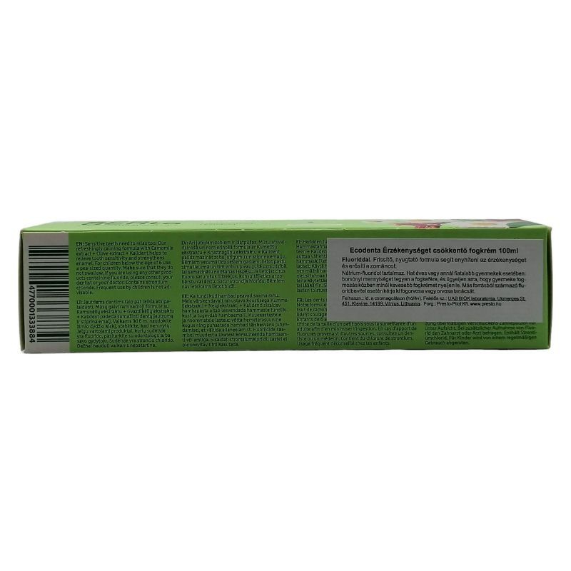Összetevők: Glycerin*, Aqua*, Hydrated Silica*, Potassium Nitrate, Strontium Chloride*, Calcium Hydroxyapatite*, Sodium Cocoyl Glutamate*, Aroma, Eugenia Caryophyllus Flower Extract*, Chamomilla Recutita (Matricaria) Flower Extract*, Xanthan Gum*, Titanium Dioxide*, Sodium Fluoride (1131 ppm F Ż)*, Sodium Saccharin, Citric Acid*, Sodium Benzoate*, Potassium Sorbate*. 93% ingredients of natural origin.
