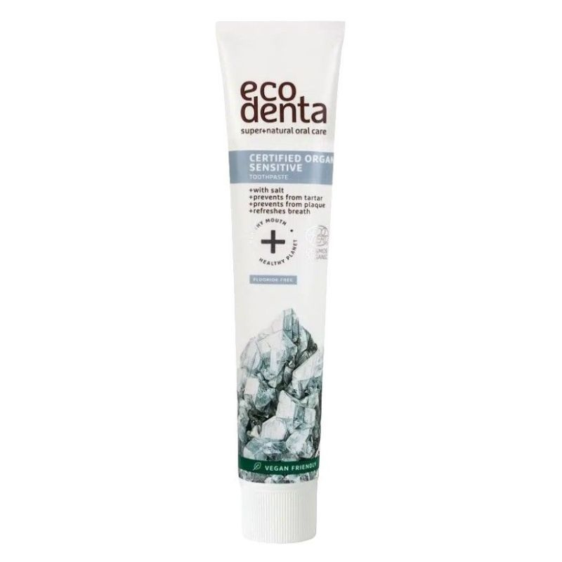Az Ecodenta fogkrémek természetes összetételűek, nem tartalmaznak habzásért felelős, sem abrazív vegyi anyagokat, peroxid- és parabénmentesek. A természetes összetevők gyorsan és kíméletesen segítenek felvenni a harcot a fog és fogíny problémáival. Az Ecodenta termékei természetes kalciumforrásnak számítanak, és képesek megcélozni a fogfelszínen jelentkező repedéseket, sérüléseket, illetve megakadályozni a fogszuvasodás kialakulását.