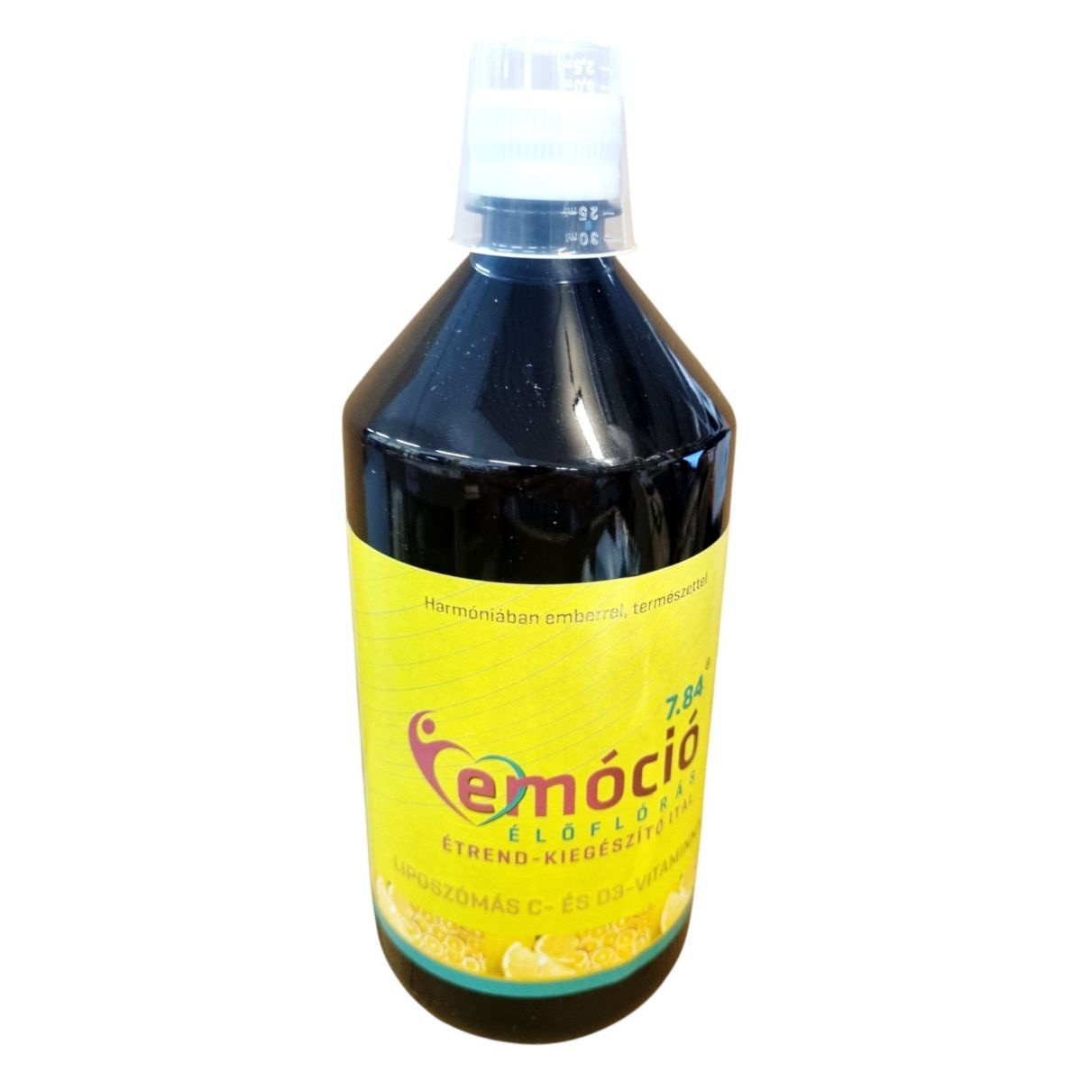 Az Emóció 7.84 egy élőflórás étrend-kiegészítő ital, amely liposzómás C- és D3-vitamint tartalmaz. Az italban található oltófermentumok, mint a Lactobacillus lactis, Lactobacillus plantarum és Saccharomyces cerevisiae, hozzájárulhatnak a bélflóra egyensúlyának fenntartásához. A termék fogyasztható önmagában vagy folyadékkal hígítva. Az esetleges üledékképződés és szálasodás természetes folyamat, amely az élőflórás mikroflóra tevékenységére utalhat. Az íz és illat változhat, ami szintén a természetes összetevők jelenlétére utalhat. A termék nem helyettesíti a kiegyensúlyozott étrendet és az egészséges életmódot.