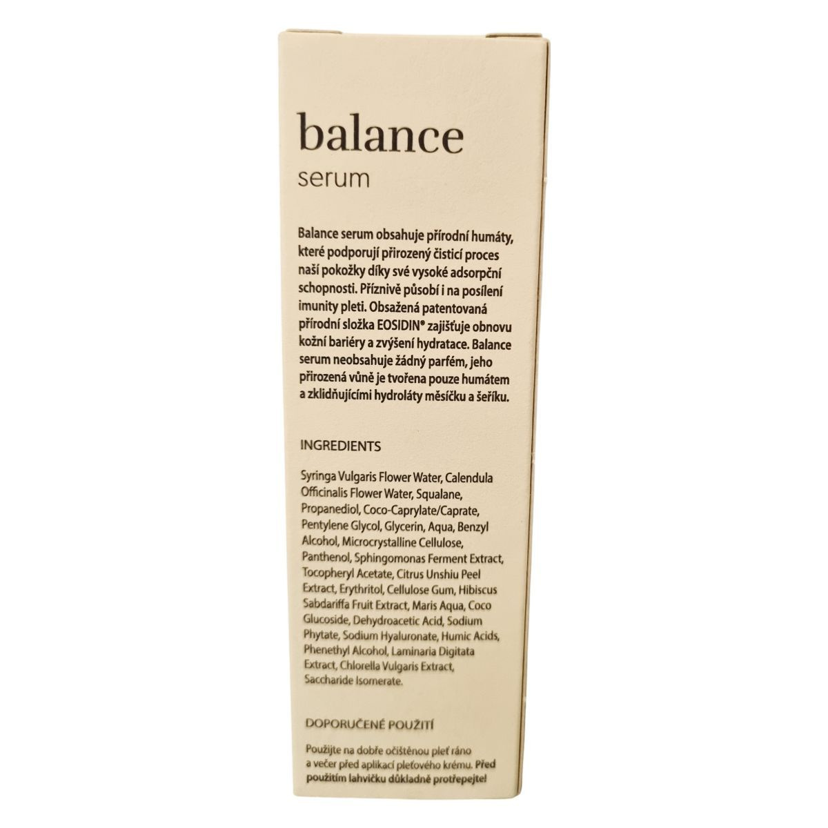 A Balance szérum természetes humátokat és növényi hidrolátumokat tartalmazó arcápoló, amely a leírás alapján támogatja a bőr természetes tisztulási és védekező folyamatait. A humátok magas adszorpciós képessége segíthet eltávolítani a szennyeződéseket, miközben hozzájárulhat a bőr egyensúlyának fenntartásához. A szérum kíméletesen nyugtathatja az érzékeny, irritált bőrt, és természetes támogatást nyújthat a külső környezeti hatásokkal szemben. A termék illatanyagmentes, illata teljes mértékben a felhasznált növényi összetevőkből származik. Mindennapi használatra készült, a bőr hidratálása előtti lépésként alkalmazva fejtheti ki legjobban hatását.