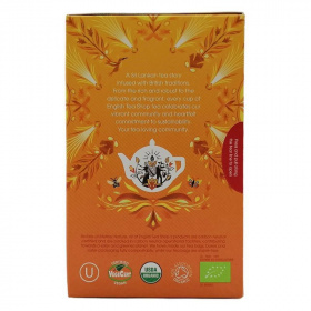 20db teafilter. Összetevők: gyömbér (30%)*, kurkuma (30%)*, citromfű (14%)*, édesgyökér (7%)*, szegfűszeg (6%)*, citromhéj (4%)*, kardamom (4%)*, feketebors (3%)*, római kömény (2%)*. Édesgyökeret tartalmaz! Magasvérnyomásban szenvedők kerüljék túlzott mértékű fogyasztását. *Összetevők: Ellenőrzött ökológiai gazdálkodásból.