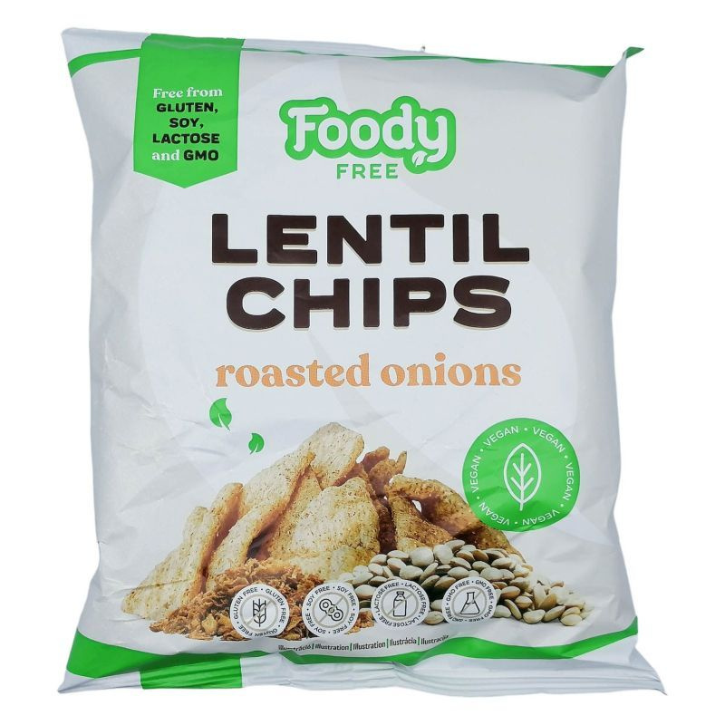 Gluténmentes, vegán lencse chips sülthagymával.