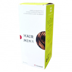 A Hair Mina étrend-kiegészítő tabletta biotint, cinket és szelént tartalmaz, melyek hozzájárulhatnak a haj normál állapotának fenntartásához, valamint rezet, amely hozzájárulhat a haj normál pigmentációjához. Az A-, B2- és B3-vitaminok támogathatják a bőr normál állapotának megőrzését. A készítmény GMP (Helyes gyártási gyakorlat) és ISO 22000:2018 szabvány szerint tanúsított gyártóhelyen készül, megőrzendő a minőségét a doboz vagy a flakon alján feltüntetett jelzés szerint. Forgalmazója a 100%-ban magyar tulajdonú Goodwill Pharma Nyrt., amely biztosítja a termék magas minőségét és biztonságát.