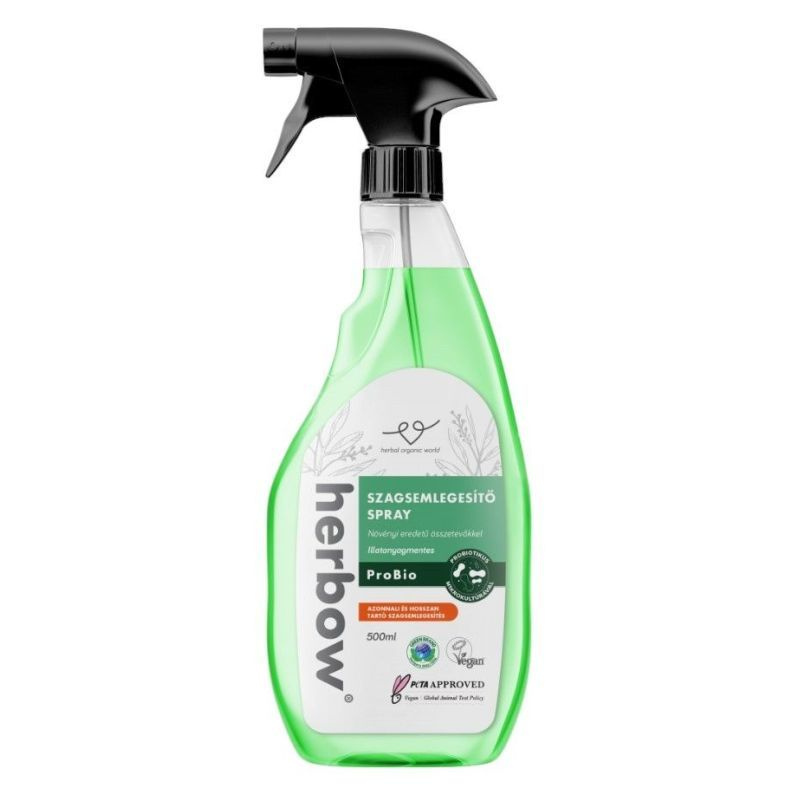 A Herbow probiotikus szagsemlegesítő spray hatékonyan és tartósan szünteti meg a háztatártásokban keletkező kellemetlen szagokat. A termék olyan funkcionális anyagot tartalmaz, amely a kellemetlen szaganyagokra jellemző aktív csoportokat blokkolja, megszüntetve ezáltal a szagokat, illetve minimalizálja azok intenzitását (gyorsan ható szagtalanítás). A termék probiotikumokat (jótékony mikroorganizmusok endospóráinak szinergikus keveréke) is tartalmaz, amelyek képesek folyamatosan lebontani a szagok forrásaként megjelenő szerves anyagok széles spektrumát (hosszan tartó szagtalanítás). A kétféle hatóanyag kombinációja gyorsan ható, hosszan tartó (7+ nap) szagtalanítást biztosít.
