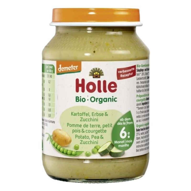 A Holle bio zöldséges bébiételek a legjobb minőségű zöldség alapanyagokból készülnek. Egészséges és finom a baba kiegészítő étrendjében. Gluténmentes, hozzáadott só nélkül, állagjavító adalékok nélkül, tojásmentes, tejfehérjementes.Elkészítés 6 hónapos kortól: Fogyasztás előtt keverjük össze a vízfürdőben felmelegített (kb.37Cº) ételmennyiséget. Értékes zsírsavakat lehet hozzáadni, ha belekeverünk Tk Holle baba étkezési olaját az ételbe. 2-4 teáskanálnyi mennyiséggel kezdjük, majd fokozatosan növeljük az adagot. Felbontott és nem felmelegített állapotban, hűtőszekrényben 2 napig tárolható.