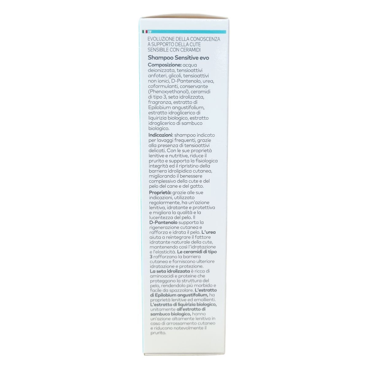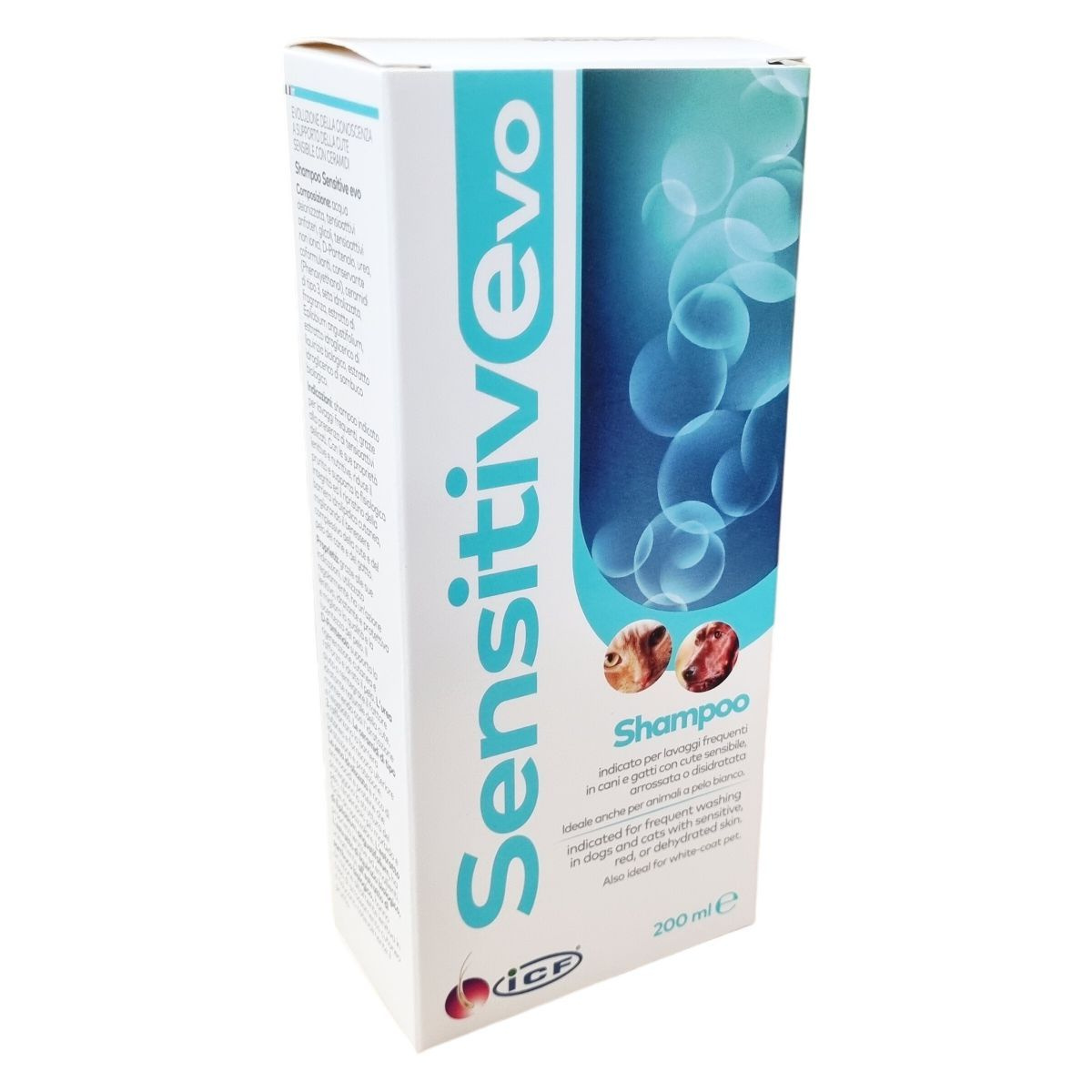 A Sensitive Evo sampon rendszeres használata nyugtató, hidratáló és védő hatású, támogatja a bőr fiziológiás állapotát és a hidrolipid védőréteg helyreállítását. A D-pantenol segítheti a bőr regenerációját és a szőrtüszők hidratáltságát, míg a karbamid fenntartja a rugalmasságot. A ceramidok erősítik a bőr védővonalát, a selyemprotein pedig puhítja a szőrzetet és könnyíti a fésülést. Az erdei deréce bőrpuhító hatású, az organikus édesgyökér és feketebodza kivonatok pedig jelentősen csökkenthetik a viszketést. Ideális fehér szőrű állatok számára is. A fel nem használt terméket a helyi előírásoknak megfelelően kell megsemmisíteni.