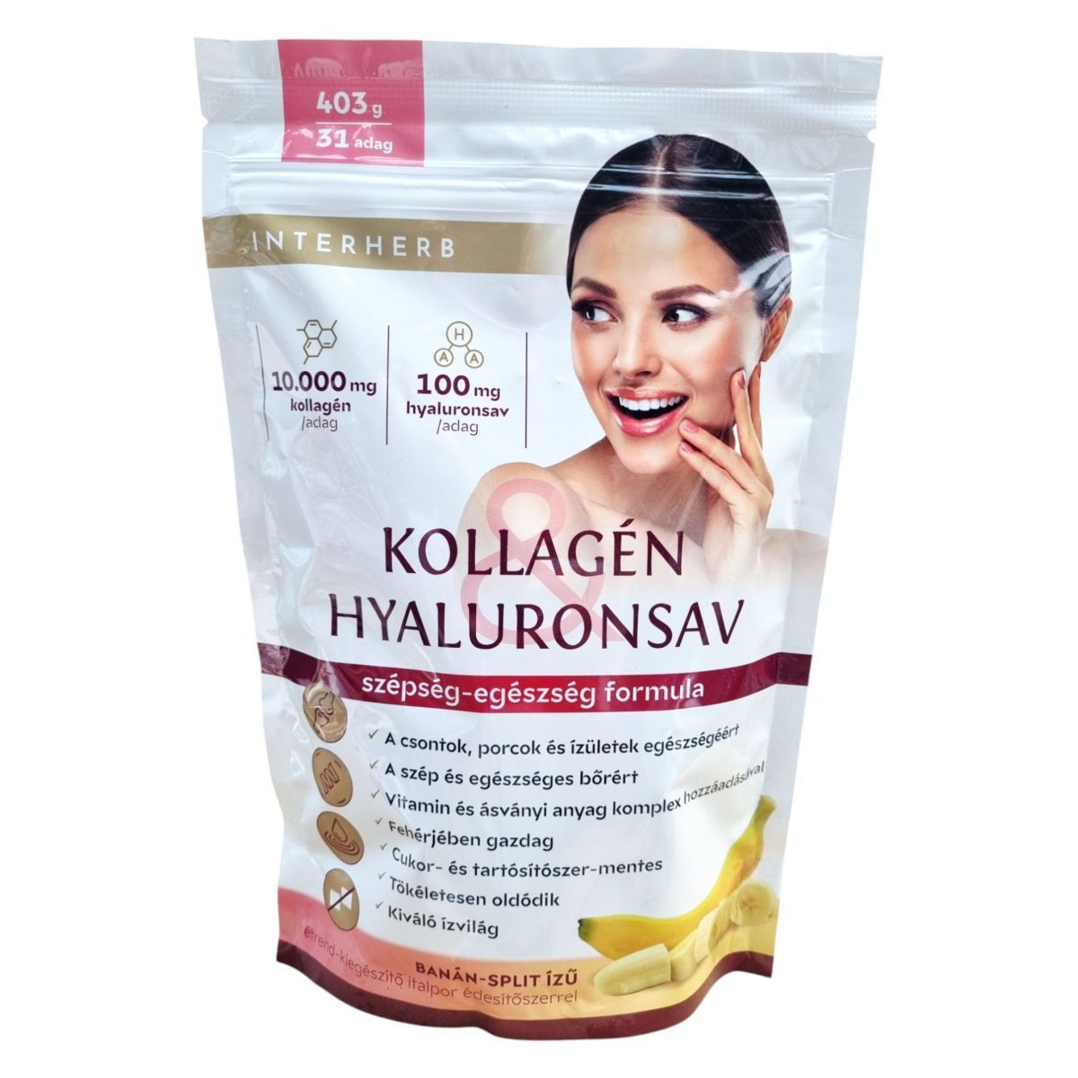Az INTERHERB KOLLAGÉN & HYALURONSAV italpor egy komplex étrend-kiegészítő, amely nagy dózisú kollagént és hyaluronsavat tartalmaz, hozzájárulva a bőr, a porcok és az ízületek egészségéhez. A termék 8 féle ásványi anyaggal és vitaminnal gazdagított, így támogatva a szervezet különböző funkcióit. A kollagén a bőr- és porcszerkezet nélkülözhetetlen vázanyaga, míg a hyaluronsav a bőrszövet építője, nagy vízmegkötő képességgel. Az A-, C-vitamin és a biotin hozzájárulhatnak a bőr normál állapotának megőrzéséhez, míg a szelén és a cink a sejtek oxidatív stresszel szembeni védelmét támogathatják. A termék banán-split ízű, cukormentes, és tökéletesen oldódik, így kellemes fogyasztási élményt nyújt.