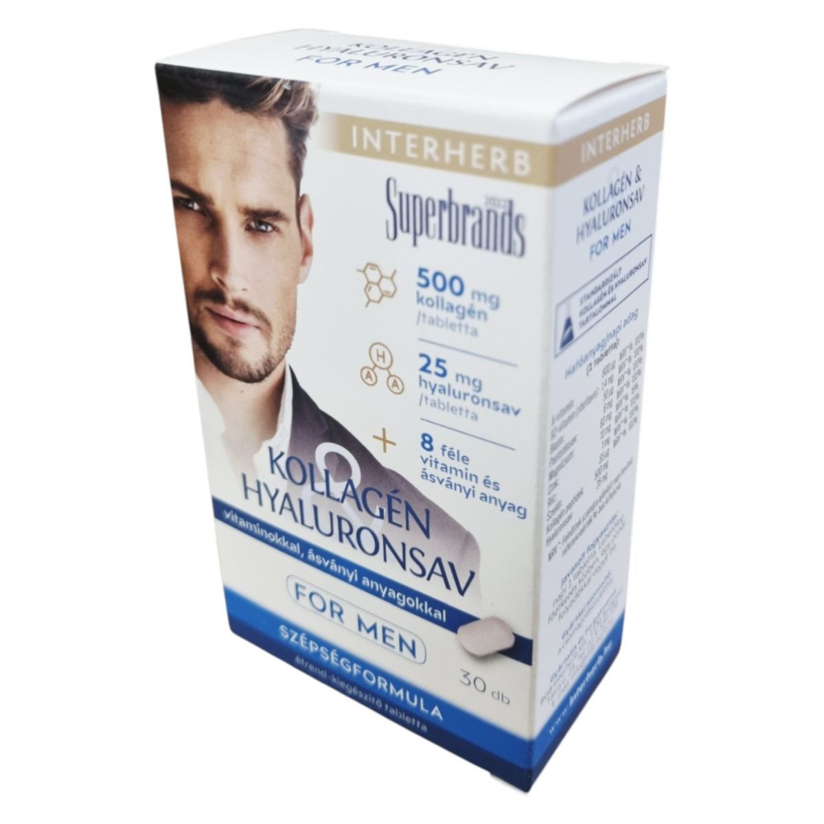 Az INTERHERB KOLLAGÉN & HYALURONSAV FOR MEN étrend-kiegészítő tabletta igényes férfiak számára készült, akik a bőrük, hajuk és körmük egészségének megőrzésére törekednek. A termék kollagén és hyaluronsav tartalmával, valamint vitaminokkal és ásványi anyagokkal segíthet a bőr normál állapotának fenntartásában, a haj és köröm egészségének támogatásában, valamint a vitalitás fenntartásában. A cink, szelén, biotin, A- és B2-vitaminok hozzájárulhatnak a bőr normál állapotának fenntartásához, míg a magnézium és a pantoténsav a fáradtság csökkentésében játszhat szerepet.