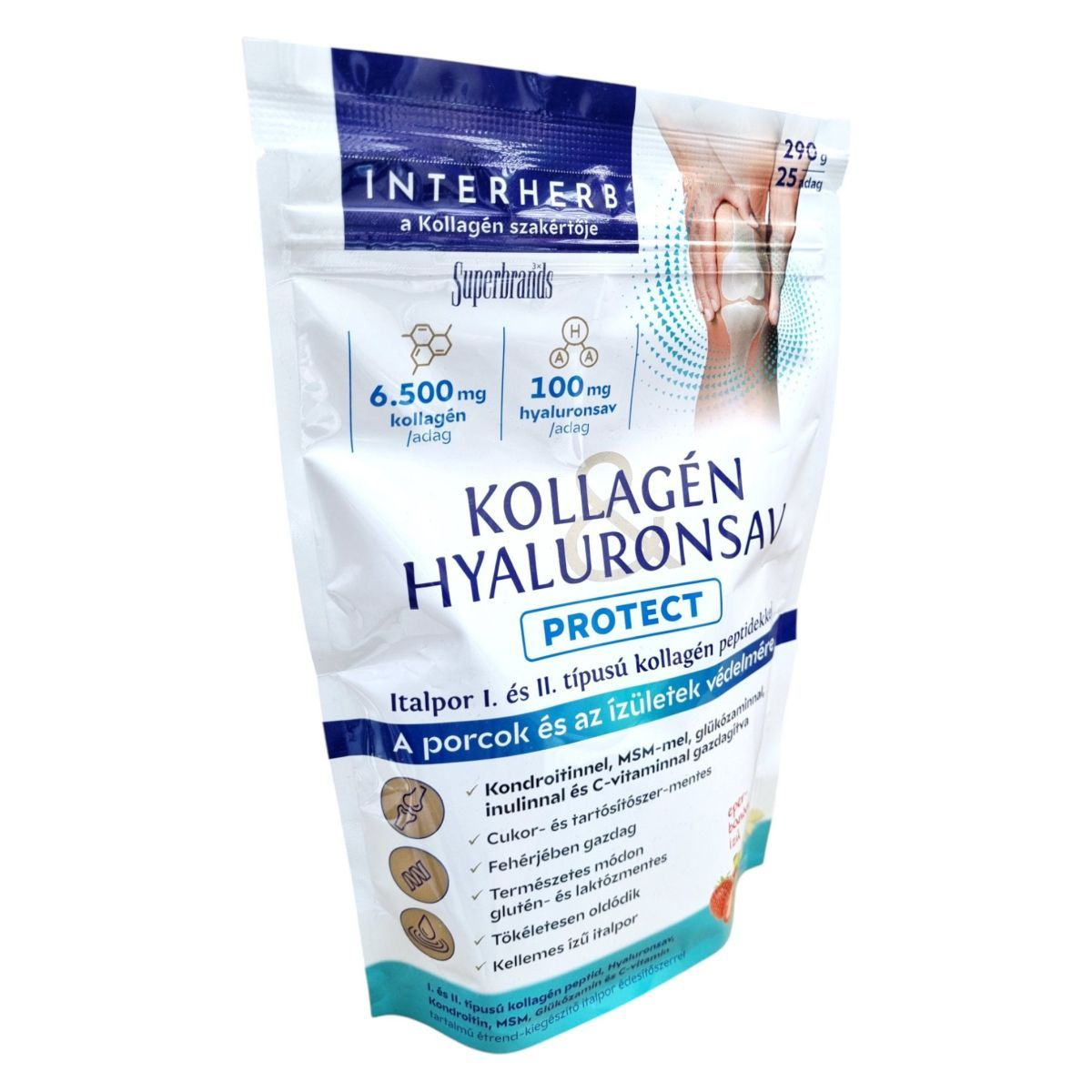 Az INTERHERB KOLLAGÉN HYALURONSAV PROTECT italpor hozzájárulhat a porcok és ízületek védelméhez. I. és II. típusú kollagén peptideket, hyaluronsavat, kondroitint, MSM-et és C-vitamint tartalmaz, amelyek támogathatják a normál kollagénképződést és az ízületek egészségét.