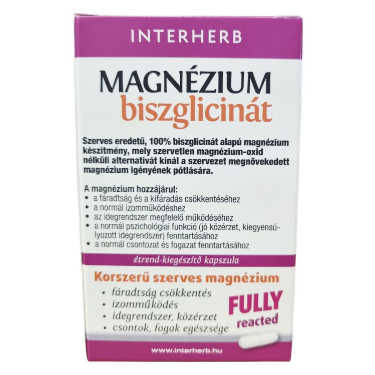 Az INTERHERB MAGNÉZIUM biszglicinát egy korszerű, szerves eredetű magnézium készítmény, amely 100% biszglicinát alapú, és szervetlen magnézium-oxid nélküli alternatívát kínál a szervezet megnövekedett magnézium igényének pótlására. A magnézium hozzájárulhat a fáradtság és a kifáradás csökkentéséhez, a normál izomműködéshez, az idegrendszer megfelelő működéséhez, a normál pszichológiai funkció fenntartásához, valamint a normál csontozat és fogazat fenntartásához. A termék teljes mértékben reakcióba lépett formában tartalmazza a magnéziumot, így hatékonyan támogathatja a szervezet működését.